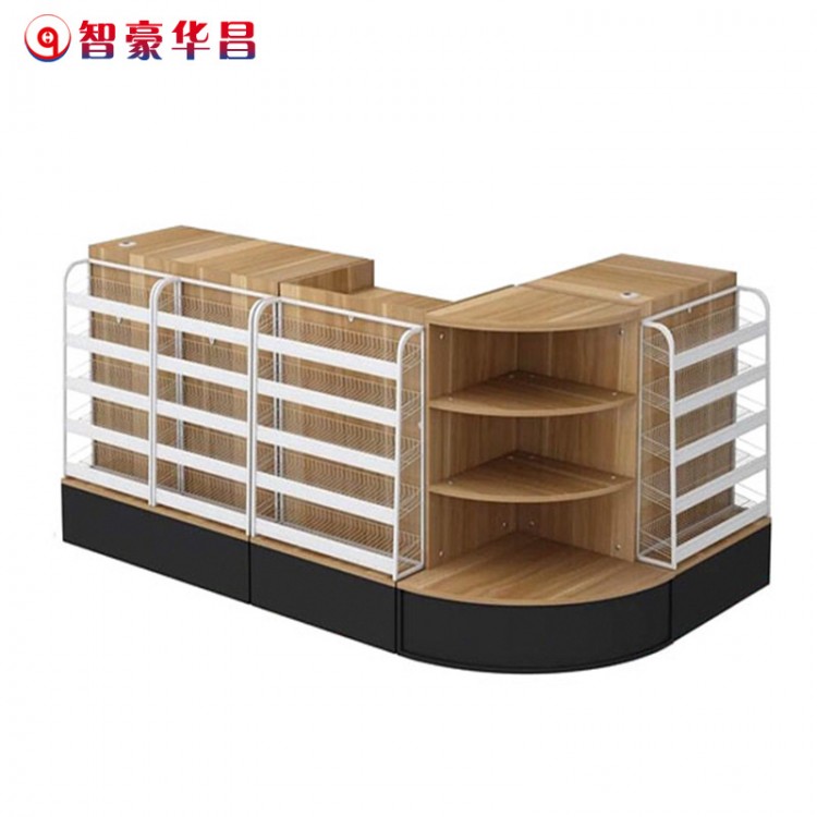 收銀臺拐角:800mm(L)*800mm(W) 收銀臺副架:60