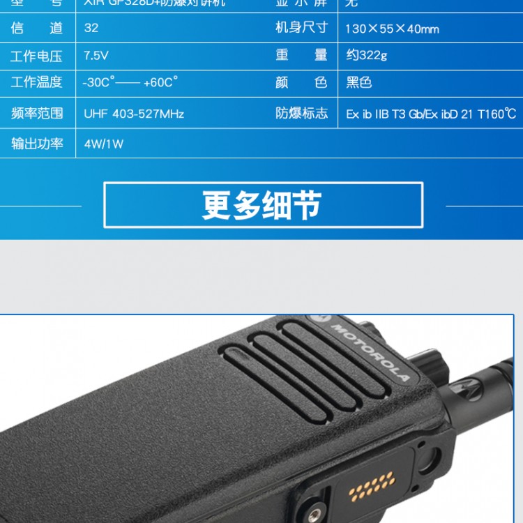 四川對(duì)講機(jī)專(zhuān)賣(mài)店摩托羅拉防爆對(duì)講機(jī)型號(hào)GP338D+MOTOTRBO 數(shù)字對(duì)講機(jī)系列,您可以更安全、更好地進(jìn)行通信,確保實(shí)現(xiàn)更率。摩托羅拉防爆對(duì)講機(jī)型號(hào)GP338D+ 數(shù)字防爆對(duì)講機(jī)專(zhuān)為不愿將就的專(zhuān)業(yè)人士而設(shè)計(jì)。這些下一代對(duì)講機(jī)可提供高性能的整合語(yǔ)音和數(shù)據(jù),能夠?qū)崿F(xiàn)操作的高級(jí)功能,可為貴公司提供暢通無(wú)阻的通信服務(wù)。