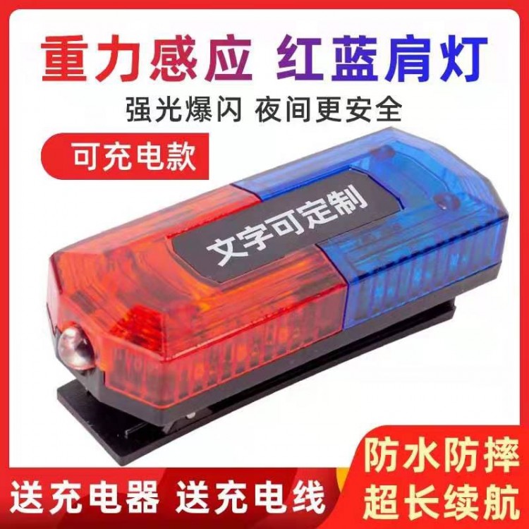 充電式LED重力感應爆閃肩燈 保安巡邏夜間肩夾式警示閃光信號 物業(yè)環(huán)衛(wèi)安保