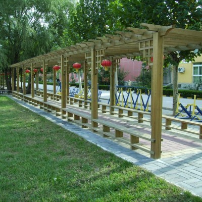 應用于各種類型的園林綠地中,別墅、室外園藝園林、戶外休閑場所、室內(nèi)外裝飾、碼頭橋梁戶外地板等領域。常設置在風景優(yōu)美的地方供休息和點景,也可以和亭、廊、水榭等結合,組成外形美觀的園林建筑群;在居住區(qū)綠地、兒童游戲場中花架可供休息、遮蔭、納涼;用花架代替廊子,可以聯(lián)系空間;用格子垣攀緣藤本植物,可分隔景物;園林中的茶室、冷飲部、餐廳等,也可以用花架作涼棚,設置坐席;也可用花架作園林的大門。