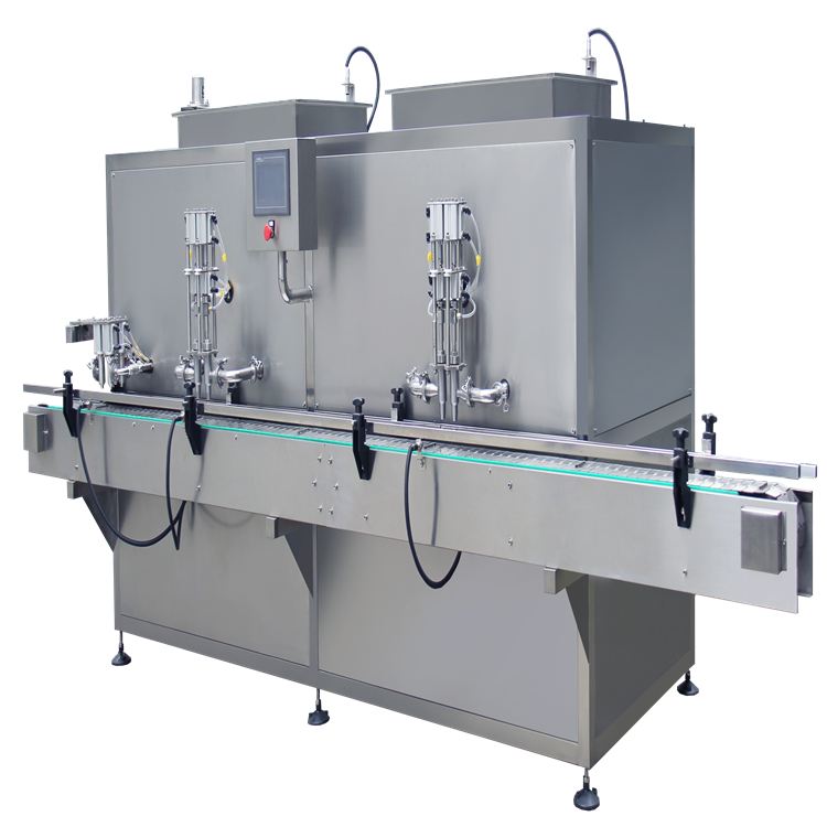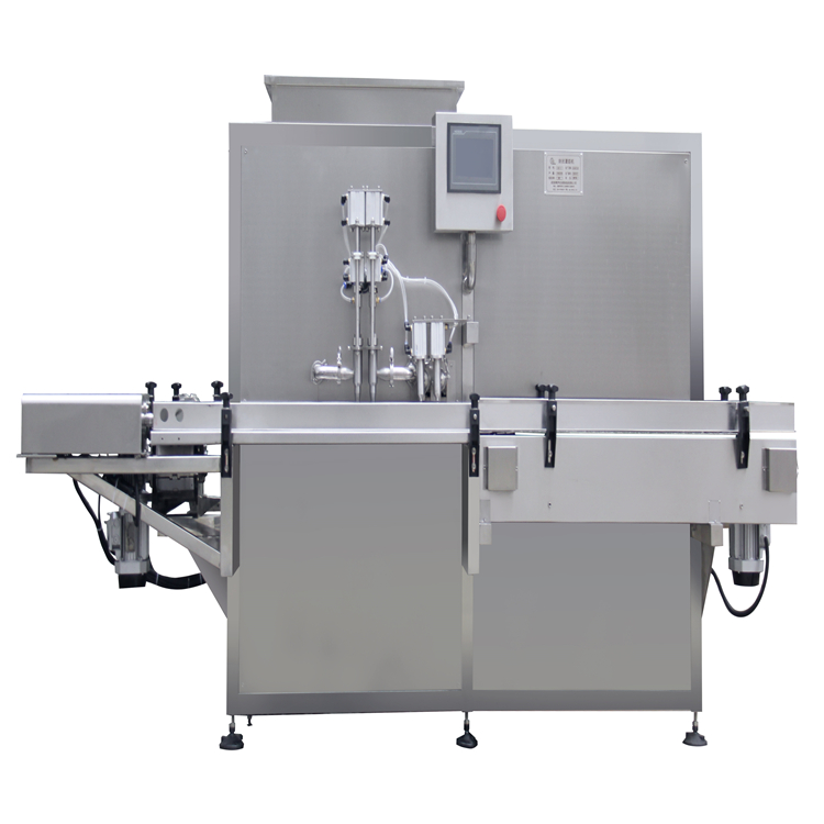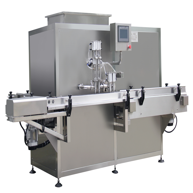物料在料桶內(nèi)經(jīng)攪拌器攪拌均勻后,再經(jīng)過相應的料/油活塞將料/油吸至計量杯(量杯計量大小可以調(diào)節(jié)),經(jīng)過活塞推動把物料推出,從而實現(xiàn)灌裝。(該機料斗可加裝電加熱,可長時間保持物料在料桶內(nèi)的溫度。本級適用范圍廣可以根據(jù)瓶型多個撥盤,一機多用,更換簡單,普通操作工就可輕易更換,減少設備資金投入時間的同時也可以減少設備占地,進而增加產(chǎn)能和定制產(chǎn)品的生產(chǎn))。