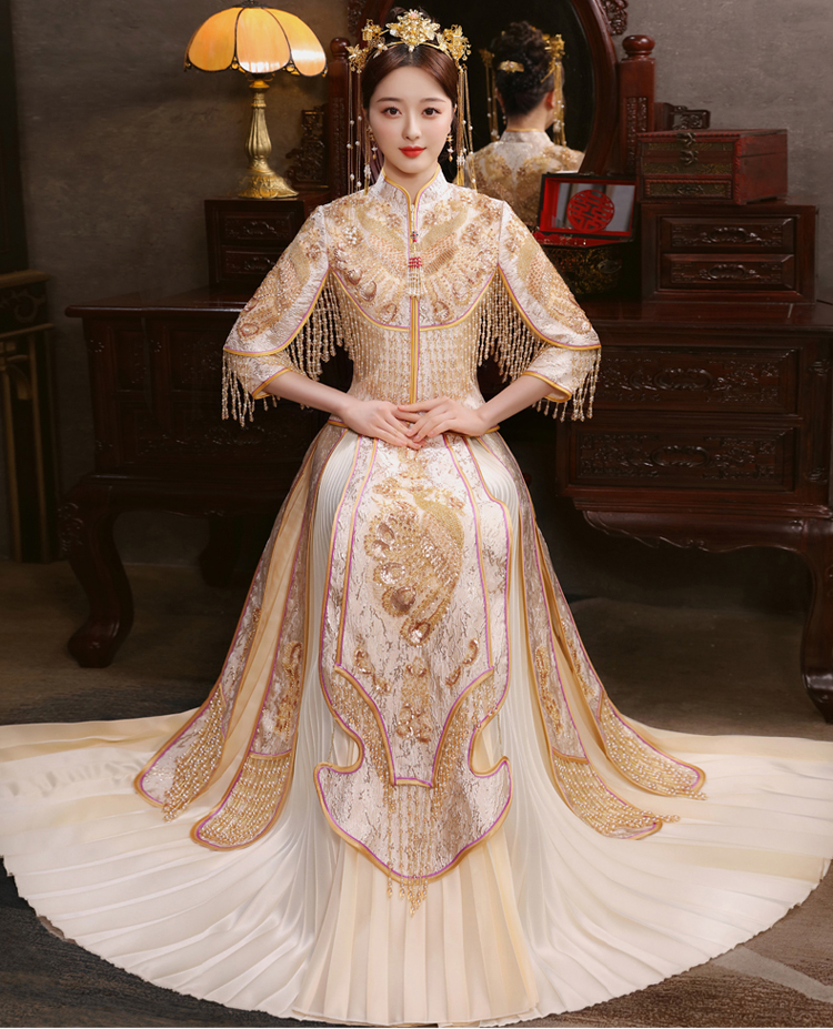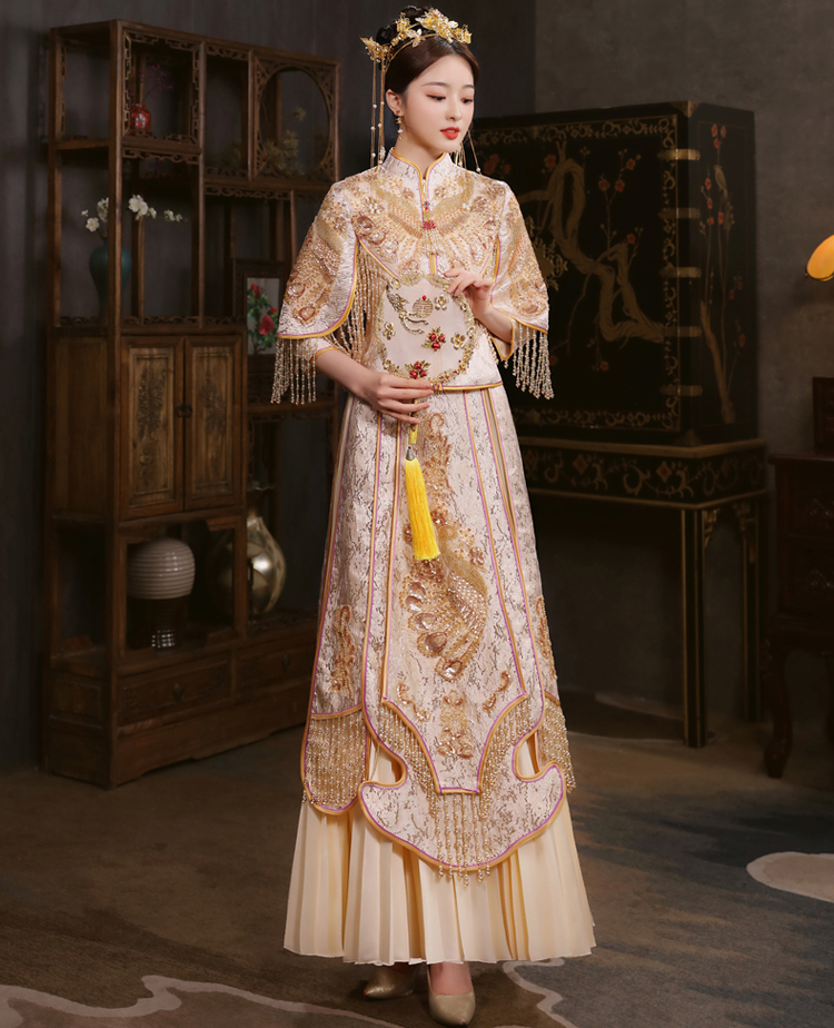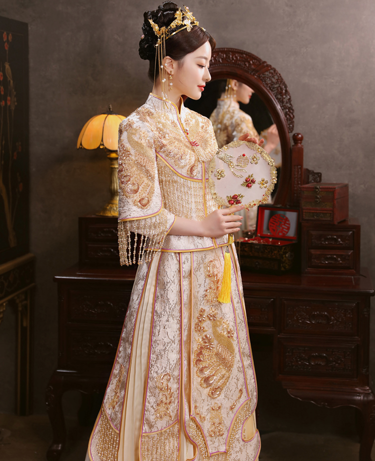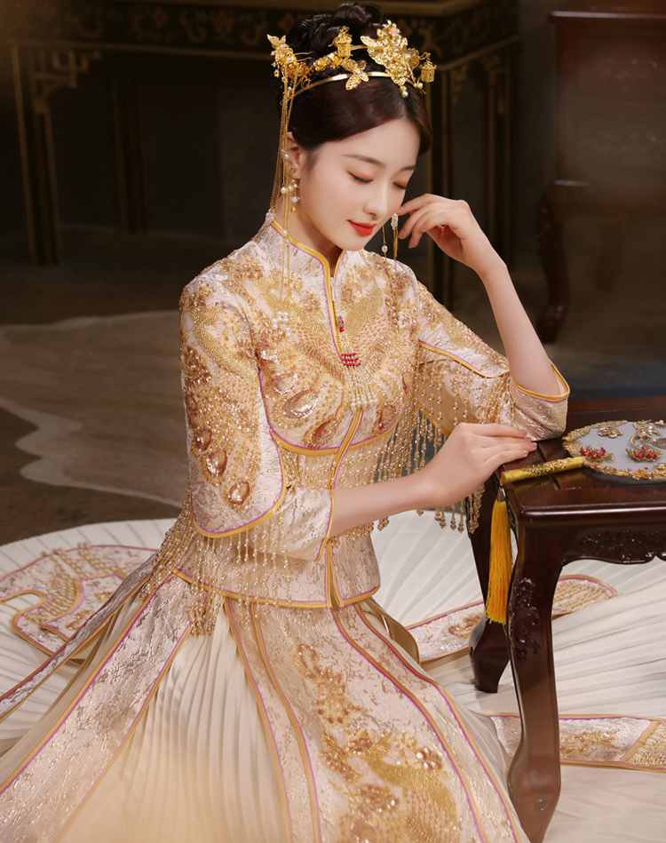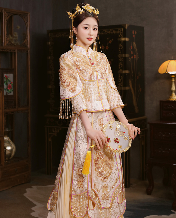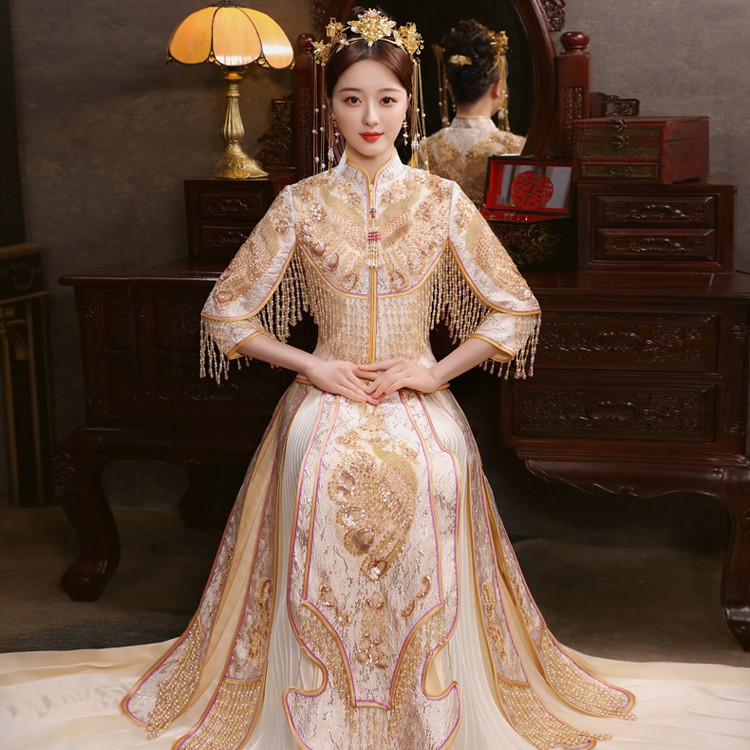 中式的華服是溫軟的綢緞,是藝術(shù)品般精美的刺繡,是精巧的立領(lǐng)和盤扣,是簡(jiǎn)潔典雅的直線裁剪。一件定制的中式嫁衣,不但是一件寄托幸福的婚禮服,更是一件有生命力的藝術(shù)品,值得代代珍藏。傳承,是中式嫁衣獨(dú)有的魅力。秀禾服,是嫁衣中獨(dú)有的中國(guó)情懷