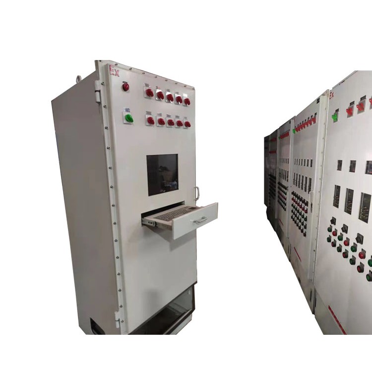 1.1 適用范圍 HQ888 型系列防爆配電控制柜(以下簡稱控制柜)控制柜符合 GB3836.1-2010《爆 炸性環(huán)境 第 1 部分:設備 通用要求》,GB 3836.2-2010《爆炸性環(huán)境 第 2 部 分:由隔爆外殼“d”保護的設備》的要求,GB3836.3-2010《爆炸性環(huán)境 第 3 部分:由增安型“e”保護的設備》,適用于 IIB 類 T4 組及以下組別的爆炸性氣 體環(huán)境中,在交流 50Hz、額定電壓至 380V,主回路額定電流到 400A 的電路中 做不頻繁接通與分斷之用,且具有過載和短路保護,裝有接觸器的控制柜還有 漏電保護功能??刂乒窦瓤勺髡彰麟娐返呐潆娀蛲〝嘀茫挚勺鲃恿﹄娐返?配電或通斷之用,還可照明、動力配電或通斷混用。
