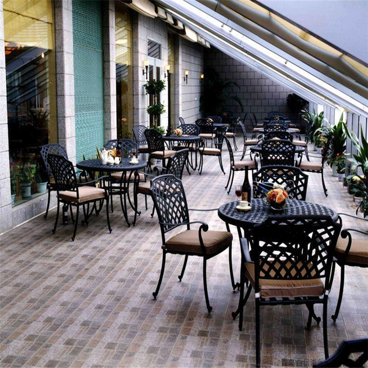 戶外桌椅的材質(zhì)在材質(zhì)上主要采用防腐的實木、PE藤、特斯林網(wǎng)布、鐵藝。