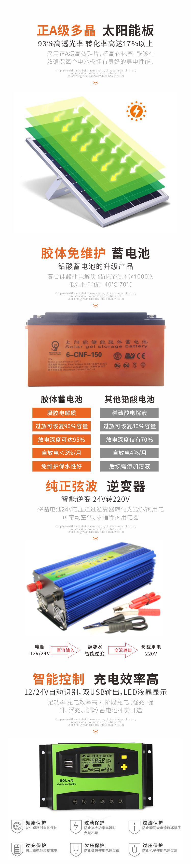 3000W-5000W小型太陽(yáng)能離網(wǎng)發(fā)電系統(tǒng)家用戶外帶空凋、冰箱,電磁爐