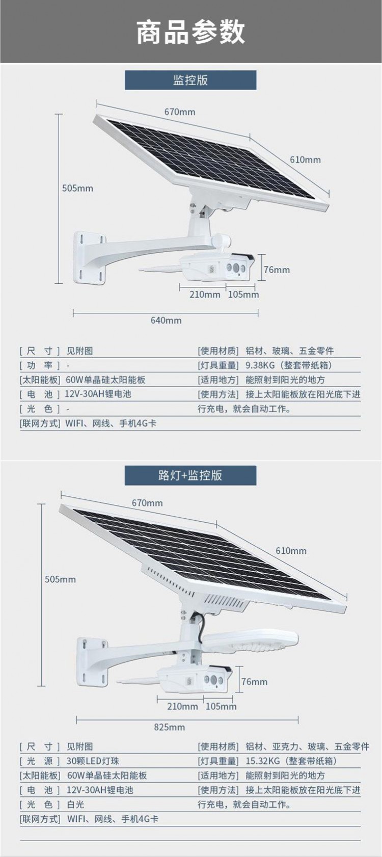 LED太陽(yáng)能路燈戶(hù)外防水監(jiān)控?cái)z像頭WIFI 4G遠(yuǎn)程監(jiān)控花園別墅