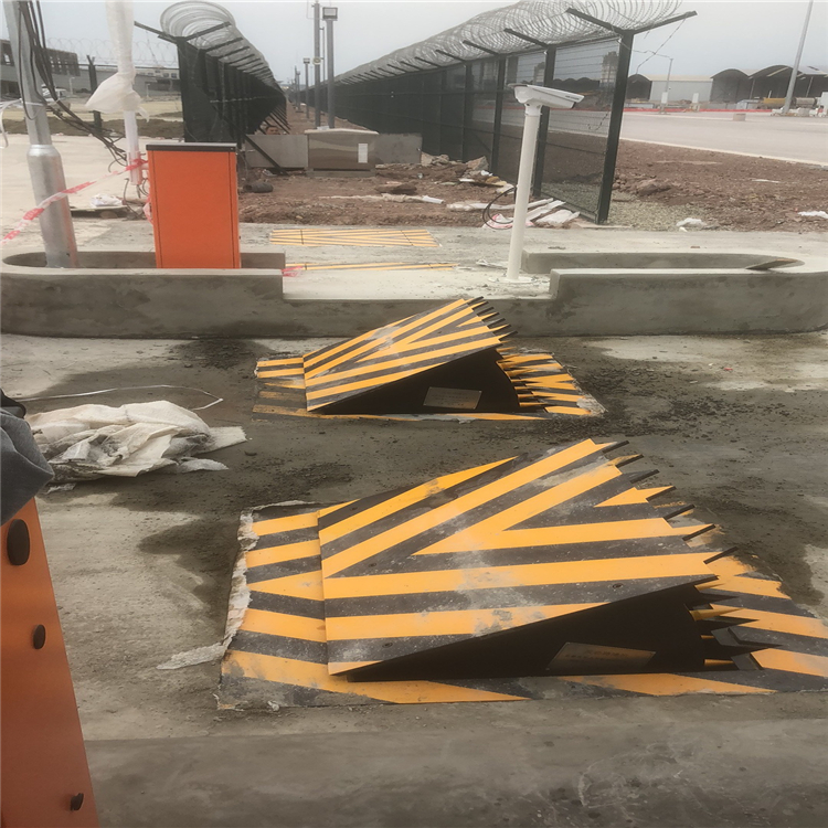 路障阻車器由厚質(zhì)PVC塑料作為活動(dòng)支座,不銹鋼硬質(zhì)刺針構(gòu)成。不銹鋼針有中心回通氣答孔。刺針扎入車胎后,胎內(nèi)空氣便會(huì)直接從中心通氣孔中快速釋放。當(dāng)車輪接觸到不銹鋼釘路障時(shí),由于行駛中的壓力,使車輪壓向路障上的不銹鋼釘,不銹鋼釘會(huì)隨著車論移動(dòng)的方向刺入車胎,車胎中氣體便從刺針內(nèi)孔泄出。達(dá)到有效攔截車輛的目的。