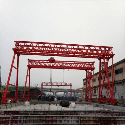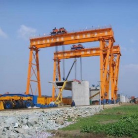 提梁機是一種為橋梁建設(shè)而專門設(shè)計的一種門式起重機。提梁機主要由拼裝式主梁、支腿、天車等組成,構(gòu)件間采用銷軸及高強螺栓連接,易于拆裝、運輸;與普通門式起重機相比,安裝方便快捷,經(jīng)濟實用。適用于經(jīng)常流動的道路橋梁建設(shè)單位 提梁機既可兩臺配合抬吊預(yù)制梁,也可以單臺起重機配雙吊具起吊預(yù)制梁,兩臺同時起重的提梁機各自的起重量一般為450噸,單臺起重的提梁機起重量通??蛇_900噸。它配置支腿行走、天車行走及天車起吊設(shè)備,可以實現(xiàn)機械化動作。主要用于將預(yù)制梁從制梁臺提吊至存梁臺位,預(yù)制梁養(yǎng)護完成后將其從存梁臺位吊運到運梁車上。作為起重設(shè)備完成架橋機的組裝和拆卸。還用于架設(shè)墩身不高的旱橋。 1,提升機構(gòu)和運行機構(gòu)運行速度低,以提高預(yù)制梁對位精度和減少對提梁機結(jié)構(gòu)的沖擊。 2,提梁機內(nèi)部空間要足夠大,以滿足吊運預(yù)制梁和架橋機的拼裝。 3,主體鋼結(jié)構(gòu)在滿足強度、剛度、穩(wěn)定性前提下,考慮拆裝運輸。 4,采用兩臺吊運預(yù)制梁時要滿足兩臺機子同步運行(提梁機出租,重慶提梁機廠家,大型龍門吊,四川生產(chǎn)提梁機廠家)