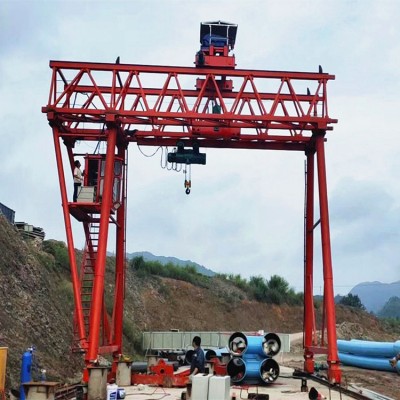 提梁機是一種為橋梁建設而專門設計的一種門式起重機。提梁機主要由拼裝式主梁、支腿、天車等組成,構件間采用銷軸及高強螺栓連接,易于拆裝、運輸;與普通門式起重機相比,安裝方便快捷,經(jīng)濟實用。適用于經(jīng)常流動的道路橋梁建設單位 提梁機既可兩臺配合抬吊預制梁,也可以單臺起重機配雙吊具起吊預制梁,兩臺同時起重的提梁機各自的起重量一般為450噸,單臺起重的提梁機起重量通??蛇_900噸。它配置支腿行走、天車行走及天車起吊設備,可以實現(xiàn)機械化動作。主要用于將預制梁從制梁臺提吊至存梁臺位,預制梁養(yǎng)護完成后將其從存梁臺位吊運到運梁車上。作為起重設備完成架橋機的組裝和拆卸。還用于架設墩身不高的旱橋。 1,提升機構和運行機構運行速度低,以提高預制梁對位精度和減少對提梁機結構的沖擊。 2,提梁機內(nèi)部空間要足夠大,以滿足吊運預制梁和架橋機的拼裝。 3,主體鋼結構在滿足強度、剛度、穩(wěn)定性前提下,考慮拆裝運輸。 4,采用兩臺吊運預制梁時要滿足兩臺機子同步運行(提梁機出租,重慶提梁機廠家,大型龍門吊,四川生產(chǎn)提梁機廠家)