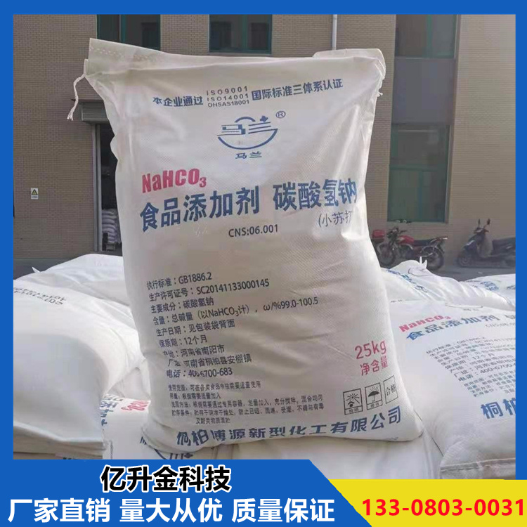 食品級(jí)碳酸氫鈉可直接作為制藥工業(yè)的原料。還可用于電影制片、鞣革、選礦、冶煉、金屬熱處理,以及用于纖維、橡膠工業(yè)等。同時(shí)用作羊毛的洗滌劑,以及用于農(nóng)業(yè)浸種等。 食品工業(yè)中一種應(yīng)用 廣泛的疏松劑,用于生產(chǎn)餅干、糕點(diǎn)、饅頭、面包等,是汽水飲料中二氧化碳的發(fā)生劑;可與明礬復(fù)合為堿性發(fā)酵粉,也可與純堿復(fù)合為民用石堿;還可用作黃油保存劑。消防器材中用于生產(chǎn)酸堿滅火器和泡沫滅火器。橡膠工業(yè)利用其與明礬、碳酸氫鈉發(fā)孔劑配合起均勻發(fā)孔的作用用于橡膠、海棉生產(chǎn)。冶金工業(yè)用作澆鑄鋼錠的助熔劑。機(jī)械工業(yè)用作鑄鋼(翻砂)砂型的成型助劑。印染工業(yè)用作染色印花的固色劑,酸堿緩沖劑,織物染整的后方處理劑。染色中加入小蘇打可以防止紗筒產(chǎn)生色花。醫(yī)藥工業(yè)用作制酸劑的原料。