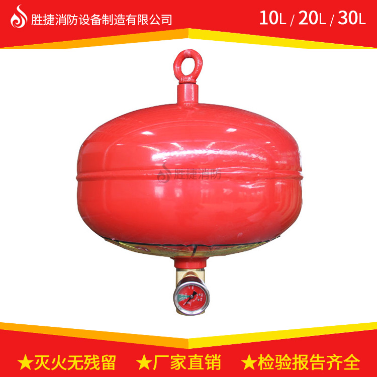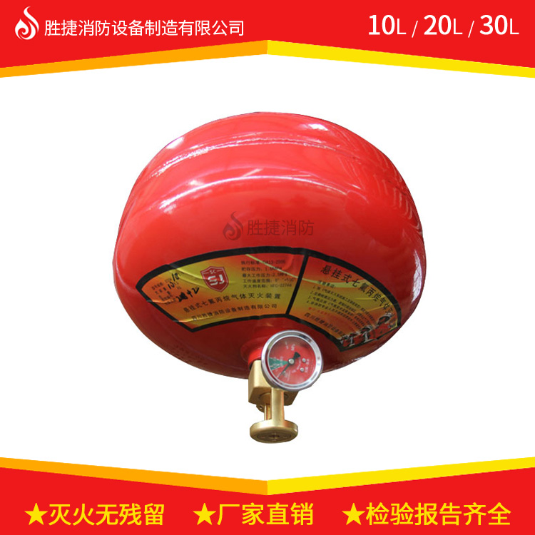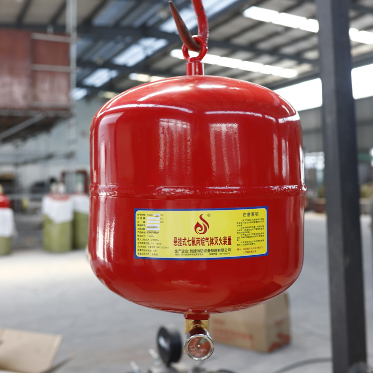 懸掛式七氟丙烷氣體滅火裝置(感溫型)由滅火劑儲(chǔ)瓶、感溫釋放組件、懸掛支架、壓力表等組成,不需安裝滅火劑輸送管道,不需設(shè)置專用的儲(chǔ)瓶間,不用與火災(zāi)報(bào)警系統(tǒng)聯(lián)動(dòng),采用懸掛或壁掛式安裝,當(dāng)火災(zāi)發(fā)生時(shí),感溫玻璃球破裂,感溫釋放組件開(kāi)啟,直接向防護(hù)區(qū)噴射滅火劑,滅火劑無(wú)管路損失,滅火速度更快、效率更高。