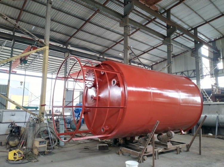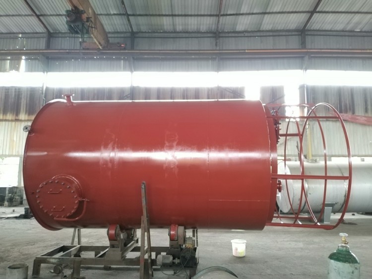 臥式儲(chǔ)罐的容積一般都小于 100m3 ,通常用于生產(chǎn)環(huán)節(jié)。臥式儲(chǔ)罐環(huán)向焊縫采用搭接,縱向焊縫采用對(duì)接。圈板交互排列,取單數(shù),使端蓋直徑相同。地下臥式儲(chǔ)罐必須設(shè)置加強(qiáng)環(huán),加強(qiáng)環(huán)用角鋼煨制而成。