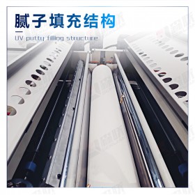 設(shè)備介紹:本機(jī)針對基材管控較大板面不均的產(chǎn)品,自動化代替補(bǔ)灰工序,將液態(tài)UV膩?zhàn)悠峋鶆蛲坎贾涟迕?,再?jīng)電光輥壓實(shí)填充進(jìn)基材管孔中,達(dá)到UV膩?zhàn)友a(bǔ)土、板面填平的做用,更能增強(qiáng)后續(xù)涂裝的油漆附著力,為底漆與面漆的涂裝打好基礎(chǔ)。
