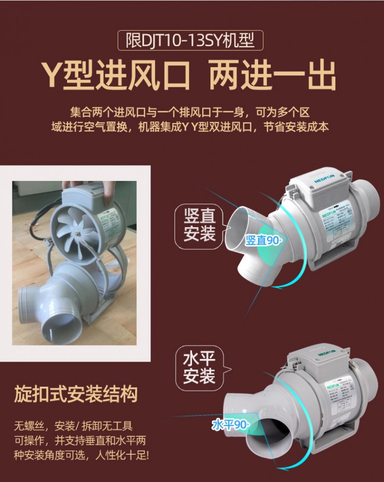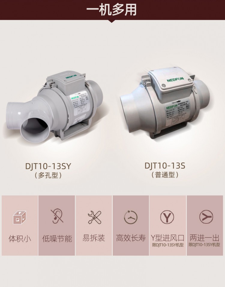 成都綠島風(fēng)斜流管道風(fēng)機(jī)增壓風(fēng)機(jī)排氣扇 換氣扇強(qiáng)力靜音抽風(fēng)機(jī) 兩進(jìn)氣一排氣口 DJT10-13SY多孔型