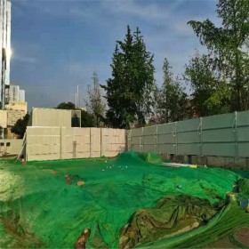 圍檔基腳采用M10水泥砂漿砌筑MU10頁巖磚磚砌0.5*0.5的基礎,用于增強圍檔抗風穩(wěn)定性;pvc圍擋設2.5米高,寬3米為一板。施工圍檔做美化處理,噴涂企業(yè)名稱、安全、質量、文明施工用語及開發(fā)項目商業(yè)廣告,嚴禁張貼、涂寫垃圾廣告?! 鷻n施工完畢,板與板之間銜接平順,直線要在一條直線上;板與板不得留有縫隙,即在場外不能看見場內施工。圍檔沿線設置紅燈或者隔段用安全反光錐用于夜間警示。