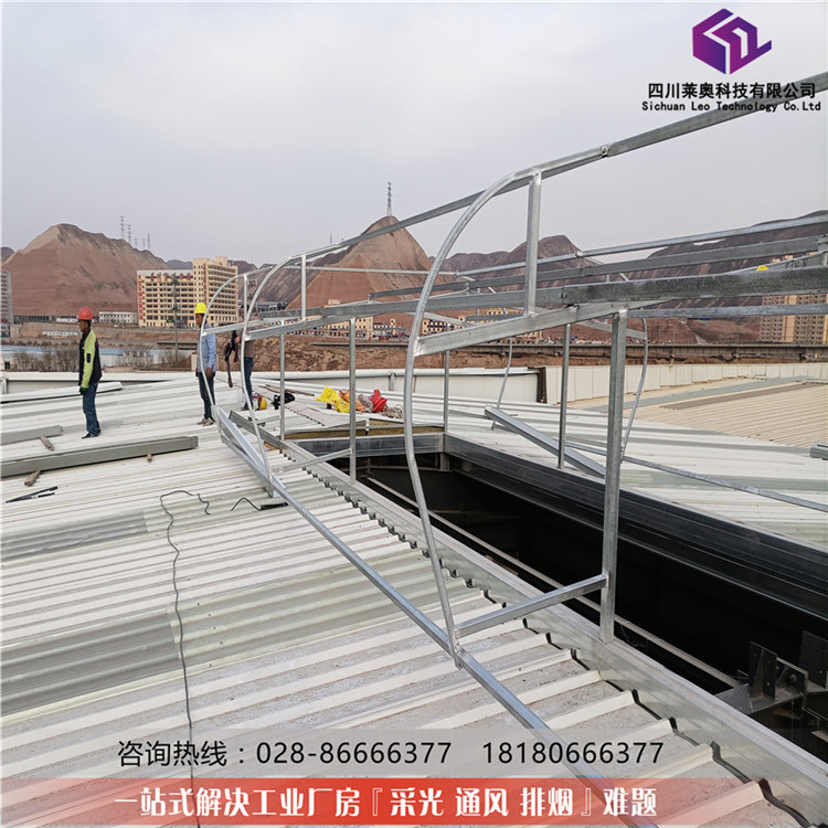 廠房電動排煙天窗主要是借助于室內(nèi)外溫差所造成的熱壓及風(fēng)力作用所造成的風(fēng)壓來實現(xiàn)換氣通風(fēng)的一種無能耗裝置,從而滿足生產(chǎn)車間的換氣要求。采光氣樓可用過屋脊和坡面,通風(fēng)量大,整體設(shè)計為流線圓弧型,這種構(gòu)造既保證了排煙通風(fēng)天窗本體強度,也有用的減輕了通風(fēng)天窗所承受的風(fēng)壓。