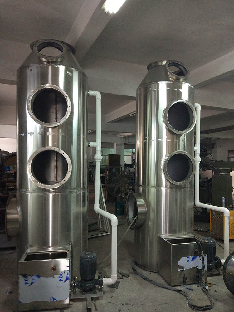 噴淋塔,教科書上的稱謂很多,比方它也可稱為洗刷塔、水洗塔、廢氣凈化塔,它是氣液反響凈化系統(tǒng)中的常用的濕式除塵設(shè)備,作業(yè)時廢氣與液體逆向觸摸,將通過洗刷使得氣體得到凈化、除塵、降溫等的效果,現(xiàn)在廣泛應(yīng)用于工業(yè)酸堿廢氣處理中。