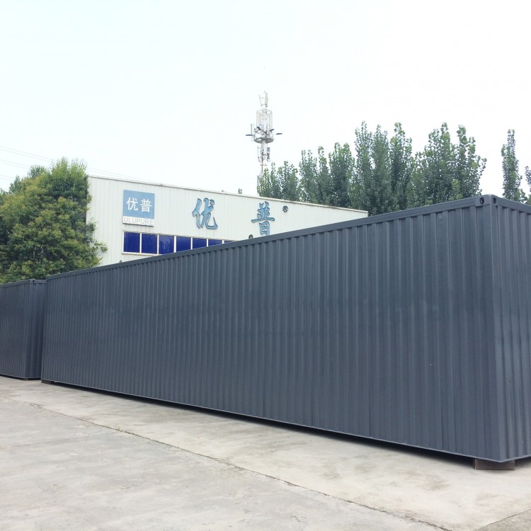 基于 UPMBR平板膜工藝設(shè)計(jì)的優(yōu)普MBR一體化裝置(集裝箱式污水處理設(shè)備),由鈑金箱體(內(nèi)外防腐)、 UPMBR平板膜組件、設(shè)備集成柜(含風(fēng)機(jī)、提升泵、抽吸泵、自控箱、紫外殺菌)及管道閥門(mén)等單元組裝而成,可實(shí)現(xiàn)半自動(dòng)/全自動(dòng)運(yùn)行,出水水質(zhì)可達(dá)中水回用標(biāo)準(zhǔn)。