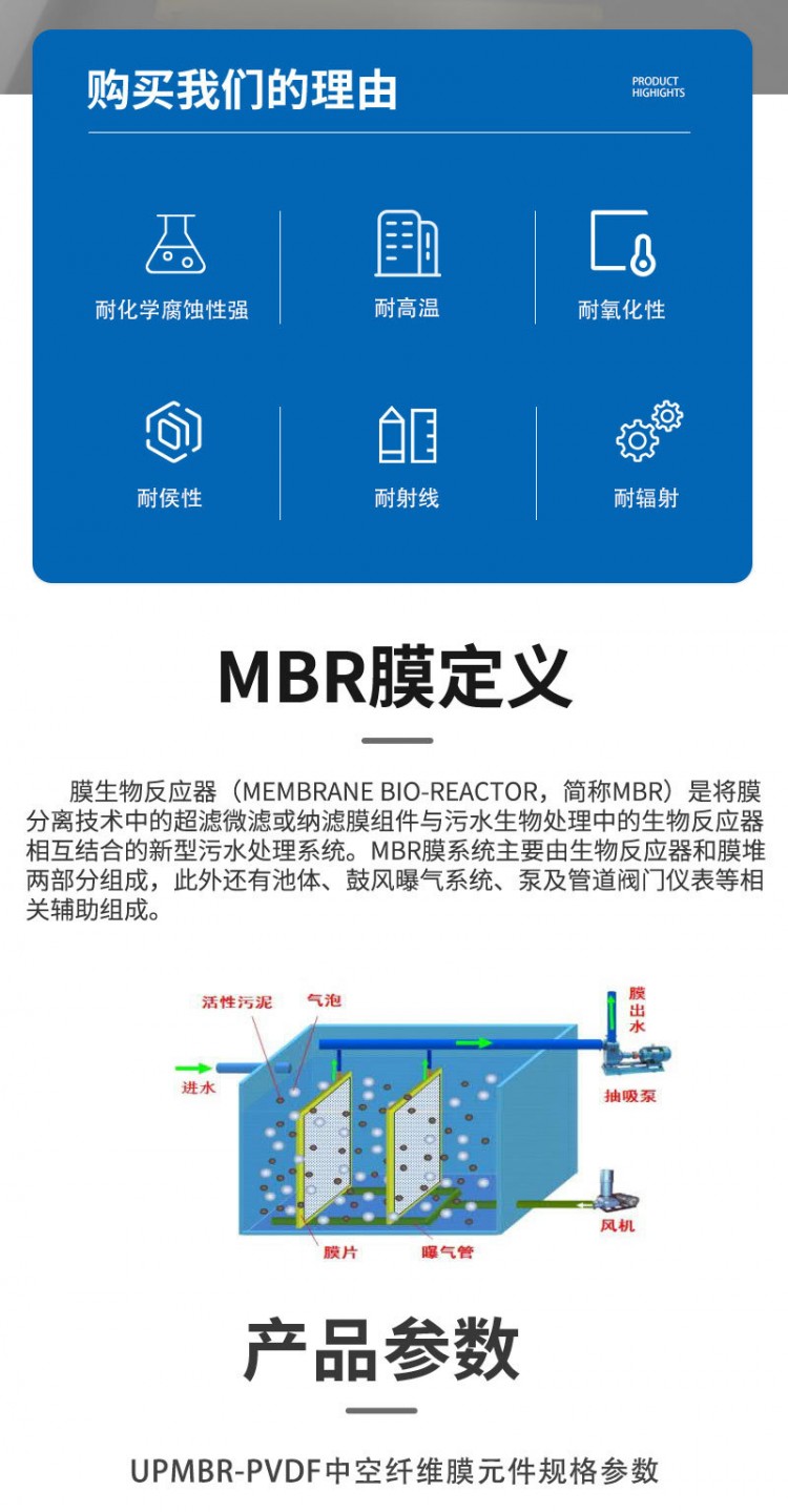 進(jìn)入21世紀(jì),由于PVDF兼具氟樹脂和通用樹脂的特性,具有較好的耐化學(xué)腐蝕性、耐高溫性、耐氧化性、耐候性、耐射線/輻射等優(yōu)異性能,成為污水處理領(lǐng)域MBR膜的主要材料。但隨著國內(nèi)污水處理需求量日益增加和污水處理排放標(biāo)準(zhǔn)的不斷提高,對MBR膜材料穩(wěn)定性要求也越來越高, 其不耐強(qiáng)酸強(qiáng)堿、防腐蝕性較弱、使用壽命偏短(設(shè)計(jì)使用壽命通常為3-5年)等缺點(diǎn),PVDF材質(zhì)的MBR膜已逐漸無法滿足市場的使用需求