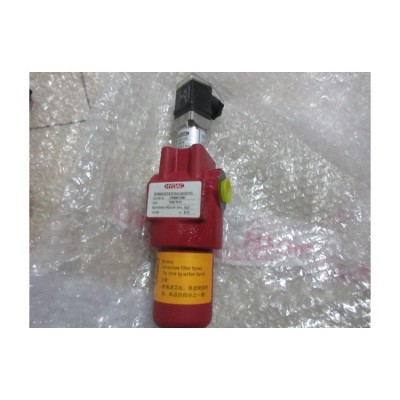 該過濾器設(shè)有旁通閥和壓差發(fā)訊裝置,當(dāng)濾芯污染堵塞到進(jìn)出油口壓差為0.5MPa時(shí),即發(fā)出開關(guān)信號(hào),此時(shí)更換濾芯,以達(dá)到保護(hù)系統(tǒng)安全的目的。