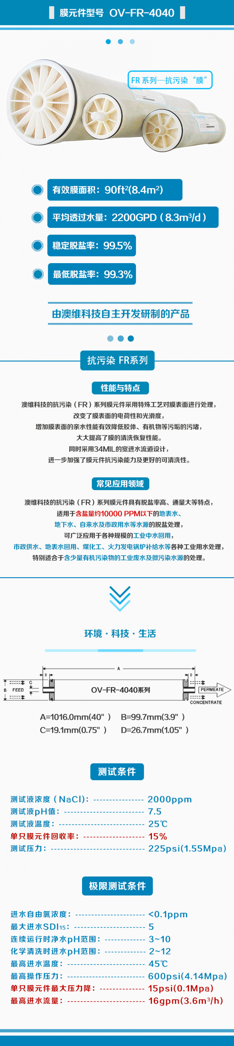 portant; overflow-wrap: break-word !important;">反滲透膜應(yīng)具有以下特征:(1)在高流速下應(yīng)具有高效脫鹽率;(2)具有較高機(jī)械強(qiáng)度和使用壽命;(3)能在較低操作壓力下發(fā)揮功能;(4)能耐受化學(xué)或生化作用的影響;(5)受pH值、溫度等因素影響較??;(6)制膜原料來(lái)源容易,加工簡(jiǎn)便,成本低廉。