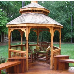 防腐木涼亭是用防腐木組建而成,防腐木是將木材經(jīng)過特殊防腐處理后,具有防腐爛、防白蟻、防真 菌的作用。
