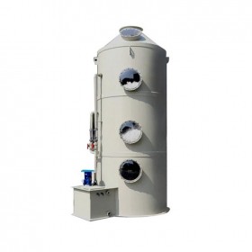 塔板葉片如固定的風(fēng)車葉片,氣流通過葉片時(shí)產(chǎn)生旋轉(zhuǎn)和離心運(yùn)動(dòng),吸收液通過中間盲板均勻分配到每個(gè)葉片,形成薄液層,與旋轉(zhuǎn)向上的氣流形成旋轉(zhuǎn)和離心的效果,噴成細(xì)小液滴,甩向塔壁后。液滴受重力作用集流到集液槽,并通過降液管流到下一塔板的盲板區(qū)。具有一定風(fēng)壓、風(fēng)速的待處**流從塔的底部進(jìn),上部出。吸收液從塔的上部進(jìn),下部出。氣流與吸收液在塔內(nèi)作相對運(yùn)動(dòng),并在旋流塔板的結(jié)構(gòu)部位形成很大表面積的水膜,從而大大提高了吸收作用。每一層的吸收液經(jīng)旋流離心作用掉入邊緣的收集槽,再經(jīng)導(dǎo)流管進(jìn)入下一層塔板,進(jìn)行下一層的吸收作用。
