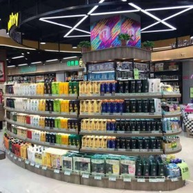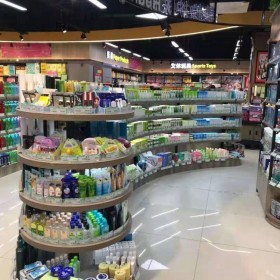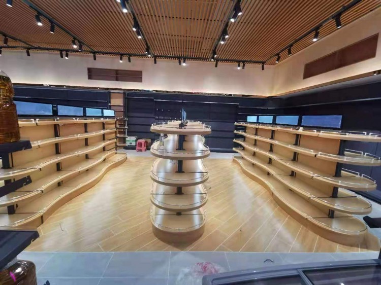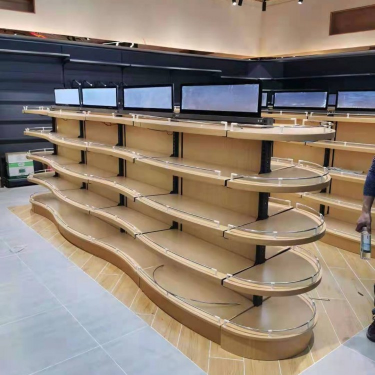 超市貨架雙面鋼木架 弧形中島展示架子 便利店展示貨架支持定制