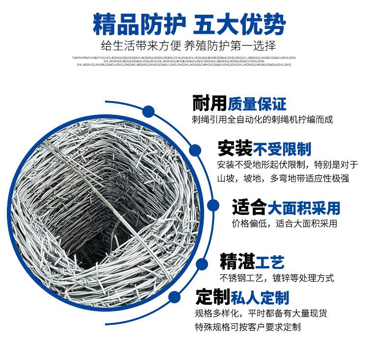 刀片刺繩一般用于監(jiān)獄做防護(hù)用,因刀片鋒利不易觸摸,起到一定的嚇阻作用那個(gè),刀片刺繩,用途比較廣泛,他可以用于居民的墻體防護(hù),也可以用來圈地等,該刺繩防盜效果比普通刺繩要好,價(jià)格也不高。