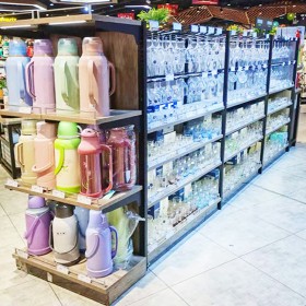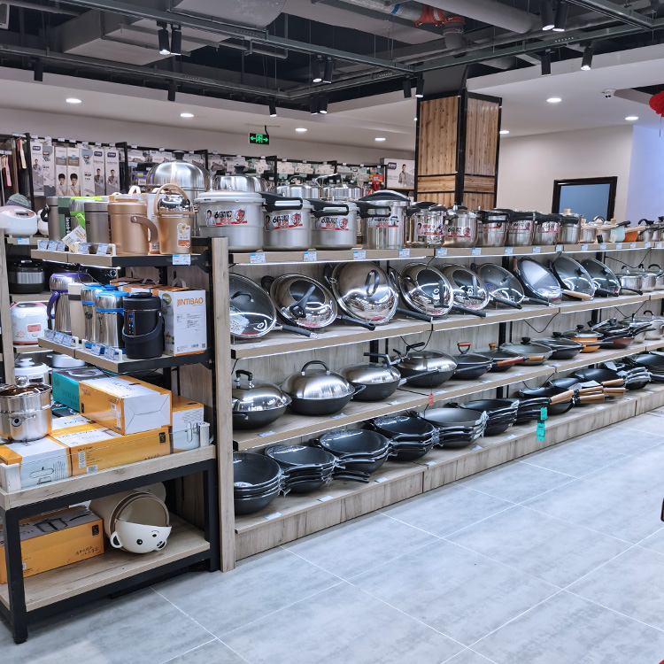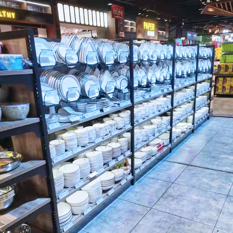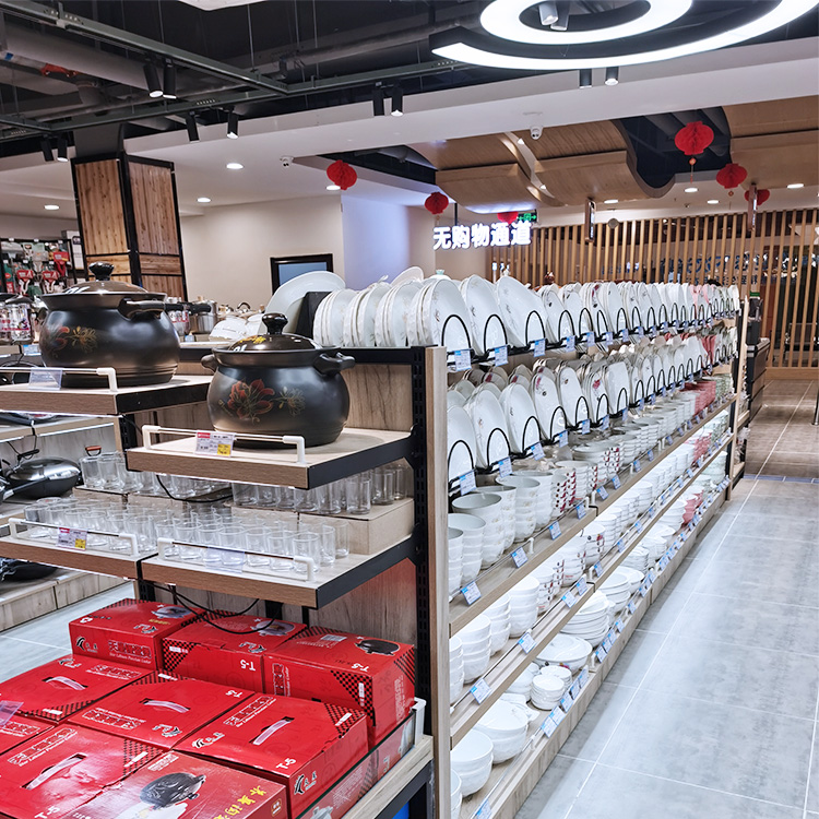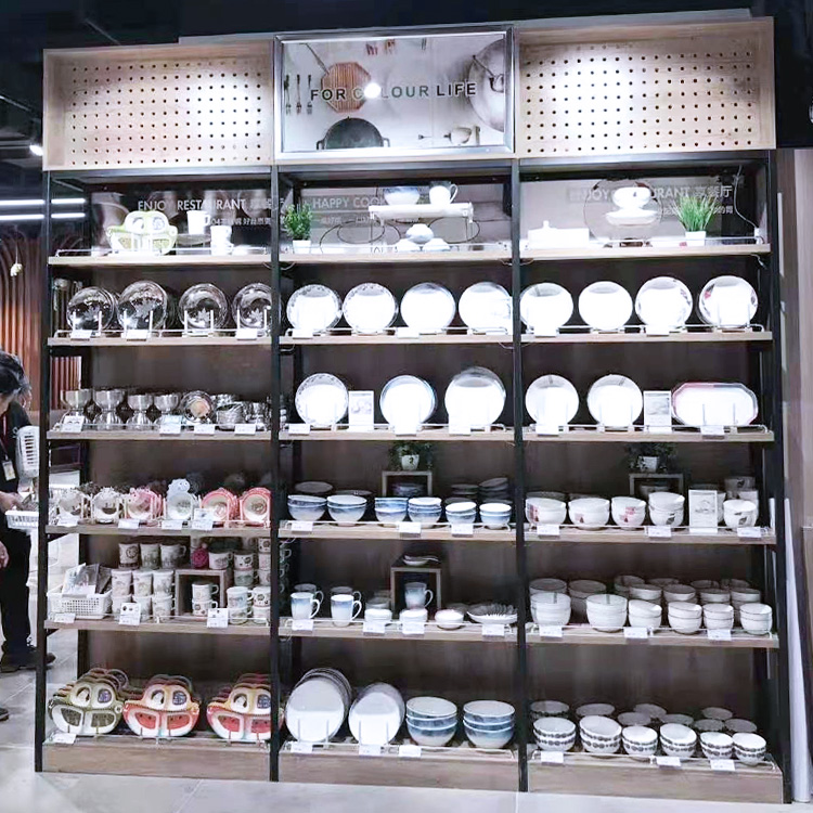 超市展示貨架 玻陶區(qū)展示架子便利店鋼木架多功能貨架廠家供應(yīng)