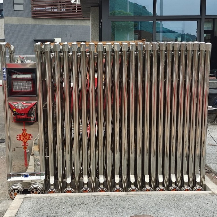 1. 四川電動伸縮門牢固結(jié)實,防盜效果好。在制作材料方面,合格的電動伸縮門均采用不銹鋼板材料加工而成,且鋼板厚度一般都在1.5毫米以上,結(jié)實牢固;在骨架方面,電動伸縮門結(jié)構設計緊湊,不易被人從外面伸工具進去開鎖;在鎖具方面。