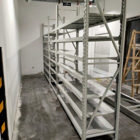 特點(diǎn): 兩兩貨架并排使用,形成一個(gè)整體的系統(tǒng),具有很好的儲(chǔ)存效果,貨物先進(jìn)先出。搬運(yùn)機(jī)械