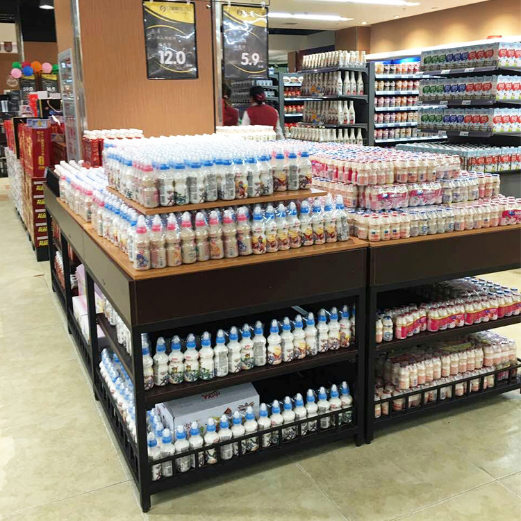 超市三層糧油架牛奶堆頭便利店促銷臺鋼木展示堆頭貨架生產(chǎn)廠家
