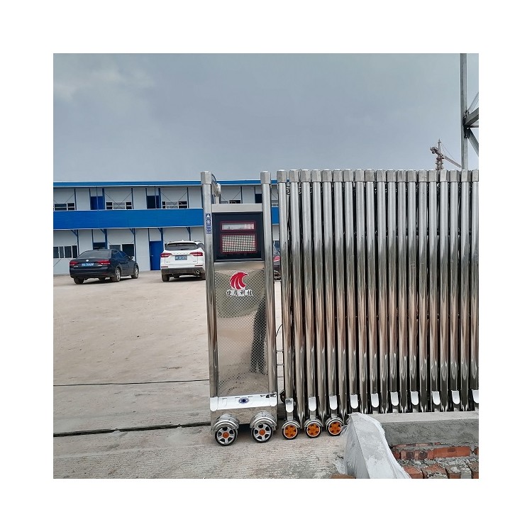 3、遇障礙自停返回:門運行前部裝有微電腦紅外線探頭,在關門運行時遇到障礙物或行人距門20CM-30CM伸縮門可自動停止并返回,從而保障行人及車輛;手動電動轉換裝置:門在停電或有故障時將轉換鑰匙逆轉90度,即由電動轉為手動。