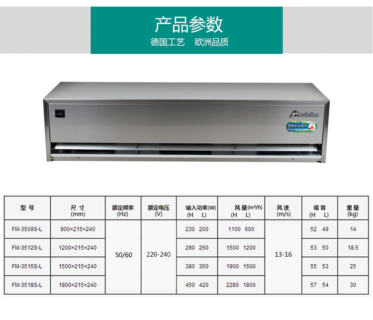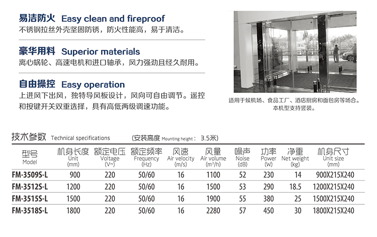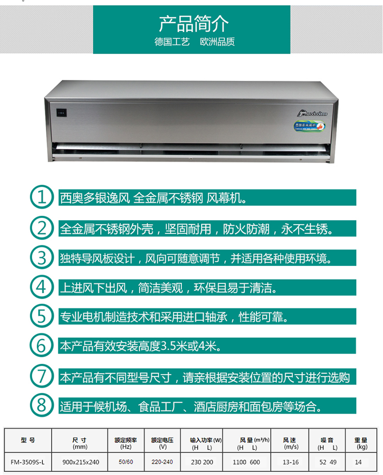 西奧多風(fēng)幕機304 不銹鋼高速離心式鋁風(fēng)輪靜音空氣幕FM-3509S-L