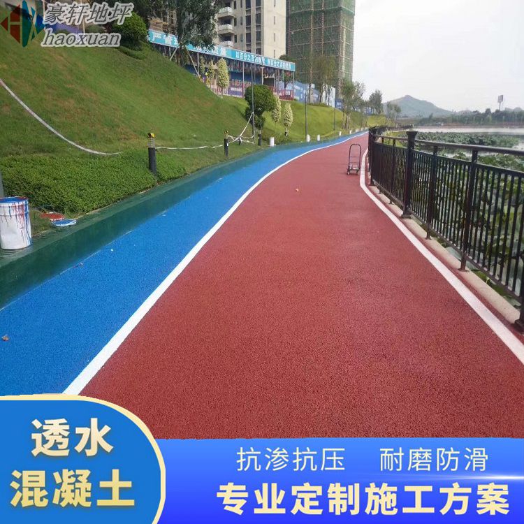 透水混凝土(彩色透水混凝土)又稱多孔混凝土,無砂混凝土,透水地坪。是由骨料(石子)、水泥、透水混凝土增強(qiáng)劑、水按照一定的比例拌制而成的一種多孔輕質(zhì)混凝土,它不含細(xì)骨料。透水混凝土由粗骨料表面包覆一薄層水泥漿相互粘結(jié)而形成孔穴均勻分布的蜂窩狀結(jié)構(gòu), 故具有透氣、透水和重量輕的特點。