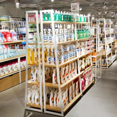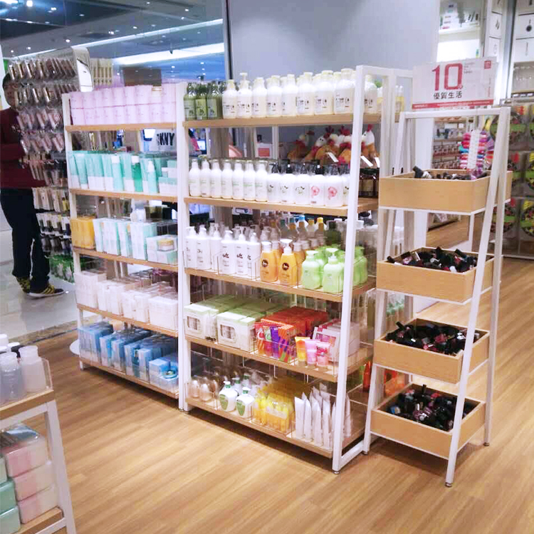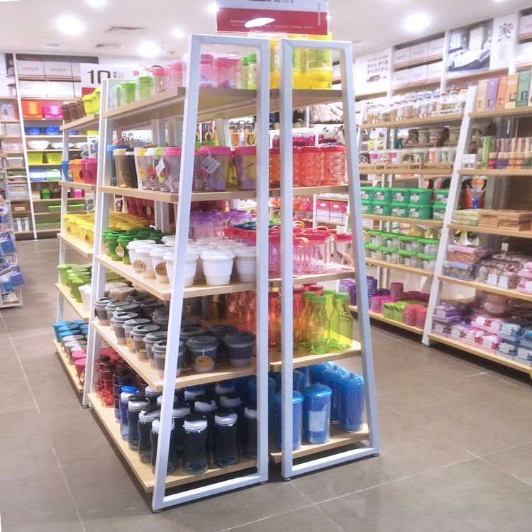 飾品展示貨架優(yōu)品店中島貨架超市便利店鋼木架子成都貨架定做廠家