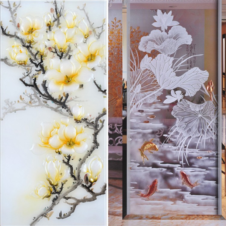 綿陽家裝室內(nèi)夾絲玻璃屏風(fēng)隔斷山水畫水墨畫藝術(shù)玻璃