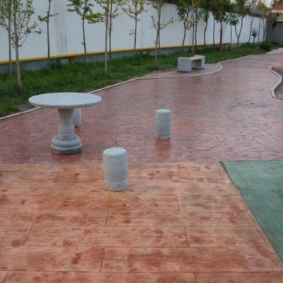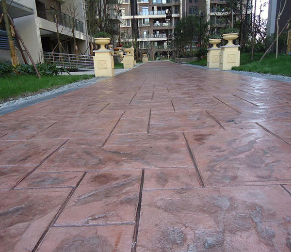 7、理論上對(duì)藝術(shù)地坪封閉2-3天后進(jìn)行沖洗,正常情況下為了防止新造路面被污染,工程全部紋理壓印完成后統(tǒng)一進(jìn)行沖洗。沖洗時(shí)不必將脫模粉全部沖洗干凈,應(yīng)留有10%左右的脫模粉顏色,這樣的藝術(shù)地面就會(huì)有效果很好的漸變效果。