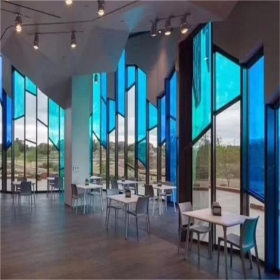 炫彩玻璃作用——令人形象深刻的色彩作用(黃藍色、綠紫色、橙藍色、藍金色以及綠粉色等);先進的加工工藝,選用離線鍍膜技能,可以加工較大尺度,且加工尺度靈敏,程度的滿足客戶需求;鍍膜面與玻璃面的色彩及色調(diào)相一致,不論在室內(nèi)還是室外具有相同的炫彩作用;具有藝術(shù)性,令人形象深的的炫彩外觀,結(jié)合修建設計,可以使修建具有較高的藝術(shù)觀賞性。穩(wěn)定,該炫彩玻璃具有高硬度、抗劃傷及優(yōu)異的化學穩(wěn)定性;