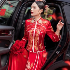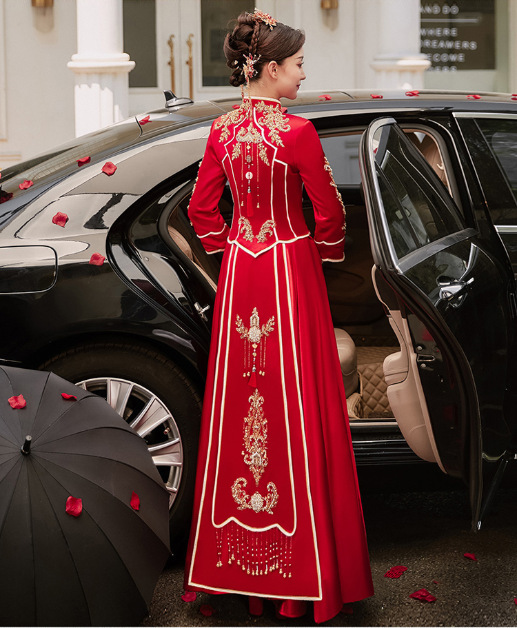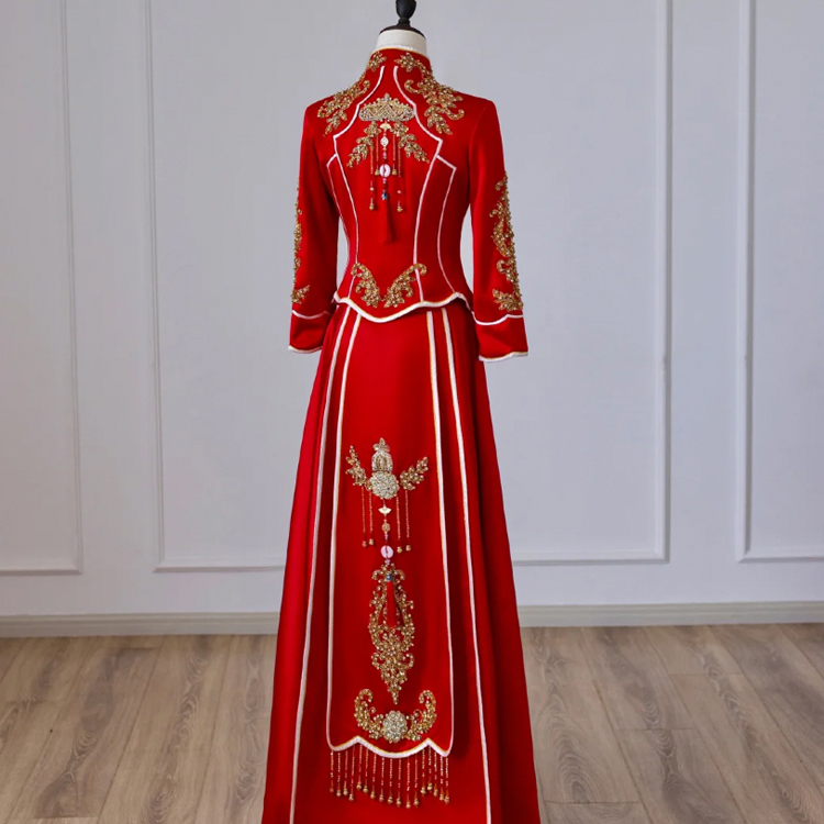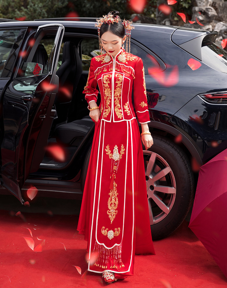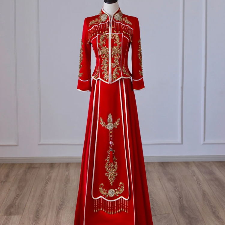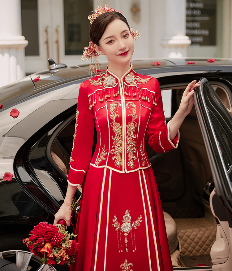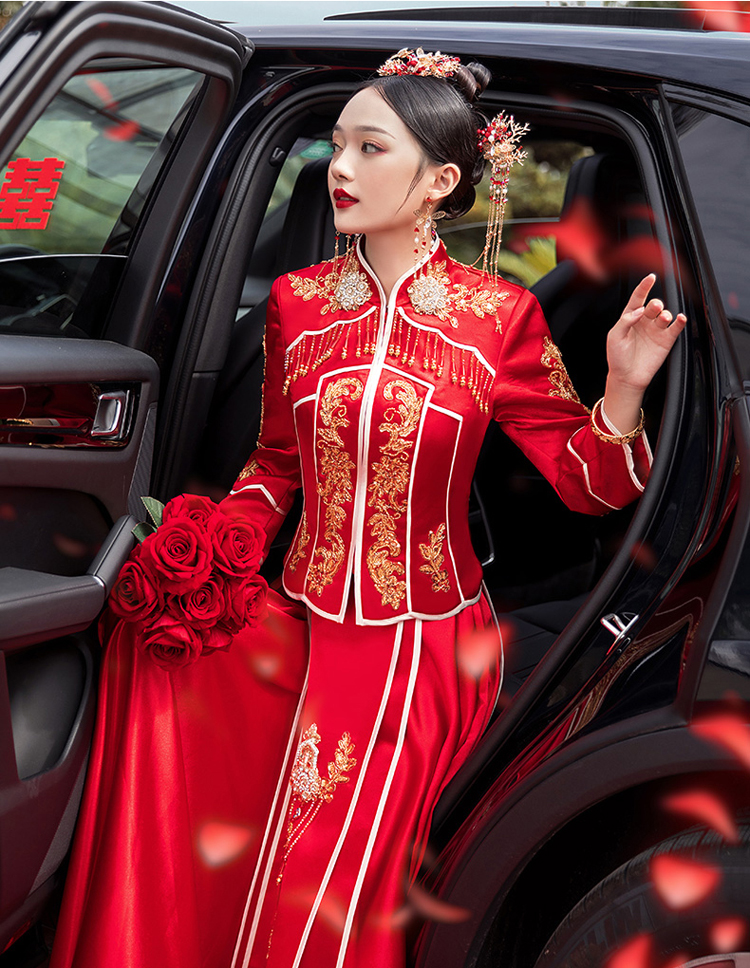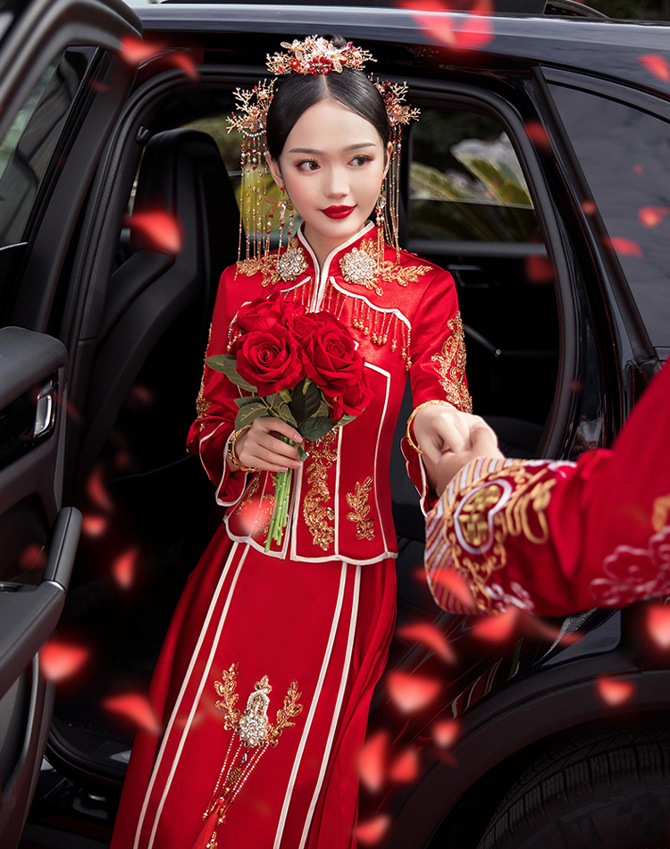 中式的華服是溫軟的綢緞,是藝術(shù)品般精美的刺繡,是精巧的立領(lǐng)和盤扣,是簡潔典雅的直線裁剪。一件定制的中式嫁衣,不但是一件寄托幸福的婚禮服,更是一件有生命力的藝術(shù)品,值得代代珍藏。傳承,是中式嫁衣獨有的魅力。秀禾服,是嫁衣中獨有的中國情懷