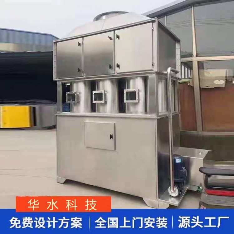通過風管將酸霧廢氣引入凈化塔。通過填料層后,廢氣和氫化鈉吸收劑與氣體和液體充分接觸,以吸收和中和氣體。凈化后,酸霧廢氣經(jīng)煙塵板脫水除去,再由風機排放到大氣中。在塔底用水泵加壓后,將吸收劑噴在塔頂噴淋而下,然后再循環(huán)到塔底。凈化后的酸霧廢氣符合國家排放標準。