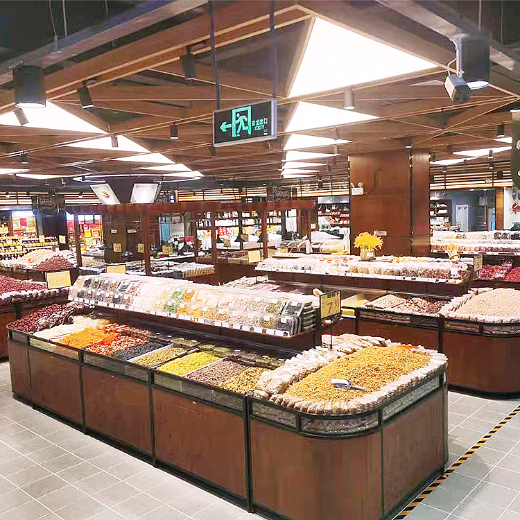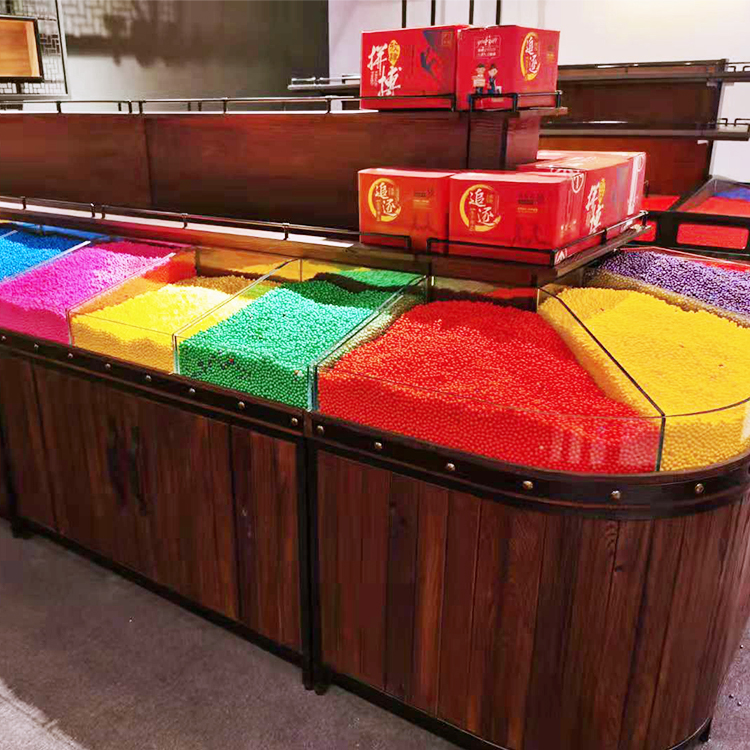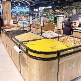 超市木制散裝貨架中島干貨展示架五谷雜糧柜干貨貨架價(jià)格支持定做