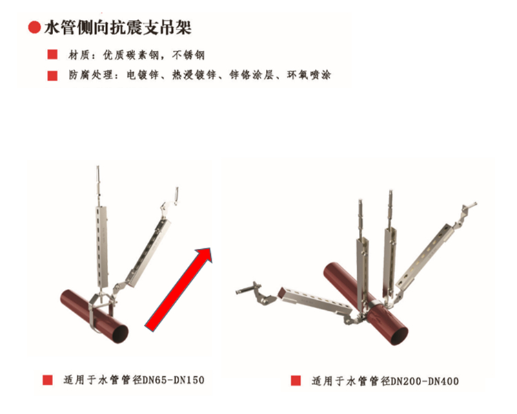 為貫徹執(zhí)行國家有關(guān)建筑工程、防震減災(zāi)的法律法規(guī)并實行以預(yù)防為主的方針。使建 筑經(jīng)抗震設(shè)防后,減輕建筑的地震破壞避免人員傷亡,減少經(jīng)濟損失。我司設(shè)計岀了 適用于不同類型的抗震吊支架,以適用于各種不同的場景。