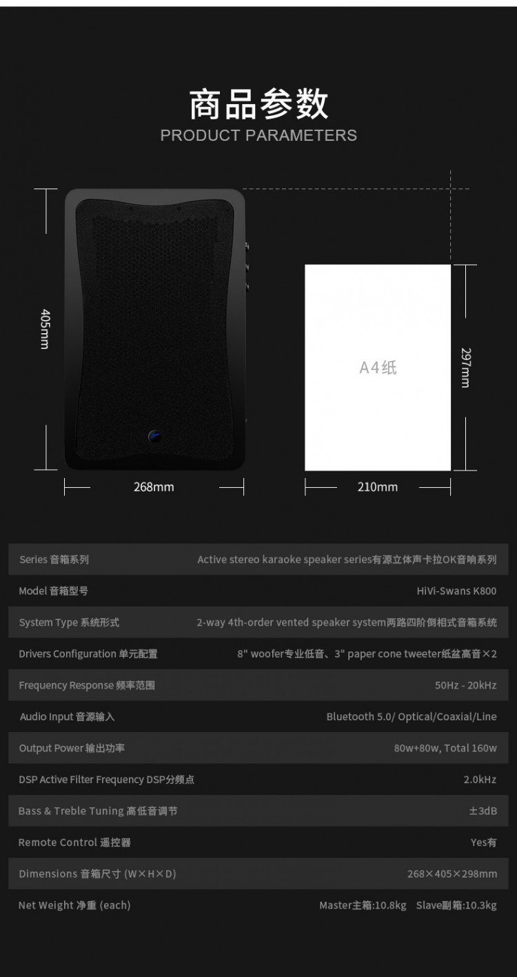 單元配置: 8”專業(yè)低音、3”紙盆高音x2