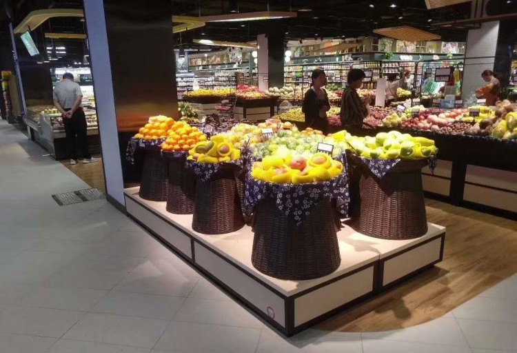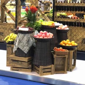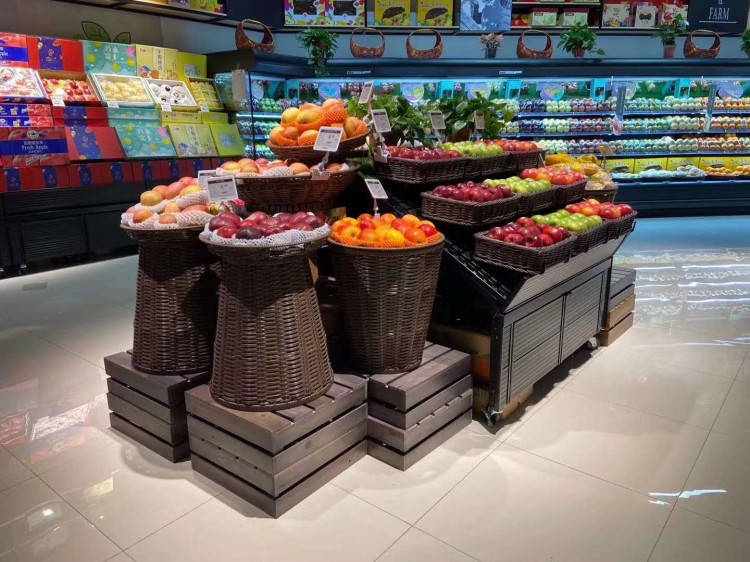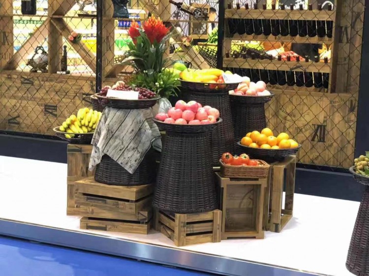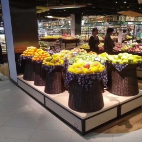 超市水果貨架 藤筐蔬果架 水果擺放藤筐 定制造型果蔬架