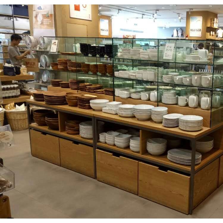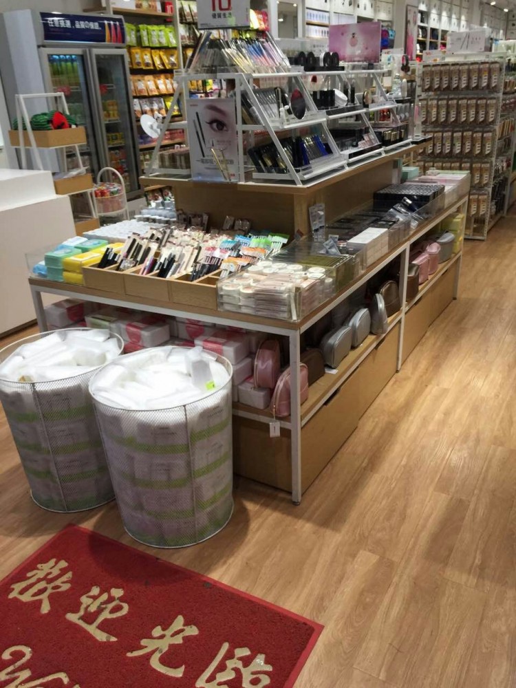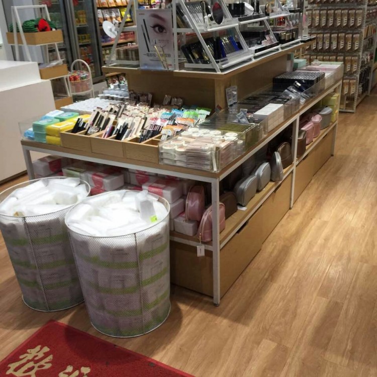 飾品展示貨架 優(yōu)品店中島貨架 超市便利店鋼木架子 成都貨架定做廠家