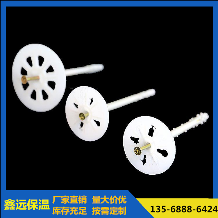 保溫釘由三部分:一是尼龍制成的套管;二是套管內(nèi)的鍍鋅鋼螺絲;三是套管前的尼龍圓盤(用以壓蓋保溫板)。它的長度根據(jù)保溫板厚度而有所不同。