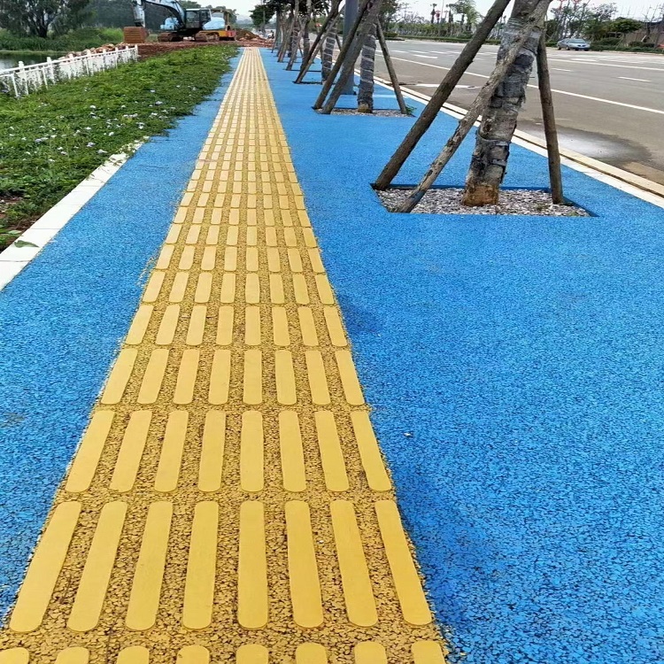 作為一種新的環(huán)保型、生態(tài)型的道路材料,該種透水路面面板鋪裝厚度根據(jù)巖性以及采用單粒徑巖石粒徑?jīng)Q定,一般厚度范圍在4~7cm。基層結(jié)構(gòu)可以采用半剛性基層或者是級配碎石、級配礫石透水基層,具有良好的透水性,是由聚氨酯膠粘劑與單級配或間斷級配骨料按一定配合比拌合而成的新型路面材料。目前該種材料主要用于鋪裝景觀道路等輕交通路面。