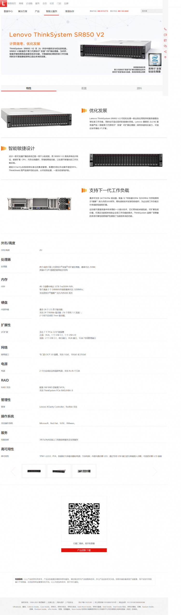 聯(lián)想Lenovo ThinkSystem SR850 v2 機架式服務(wù)器